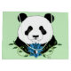 Portrait eines niedlichen Panda Bären mit einer blauen Lotus-Blume in grüner Umgebung