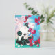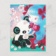 Ein originelles Fantasy-Gemälde in Acrylfarben mit dem Titel: "Panda Bear Paradise". Ein niedliches kawaii-Mädchen mit langen, hellblauen Haaren, in einem reichen roten Kleid gekleidet, mit roten Krähen im Haar, um sich zu ergänzen, pflückt sanft einen süßen Panda-Bären in einem unberührten, friedlichen Garten unter Kirschbaumblüten.