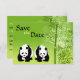 Panda Bears und Bamboo Hochzeit Speichern Sie die Datum Ankündigung in Grün, Schwarz und Weiß.