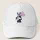 Panda bei Darts mit Dart Truckerkappe