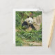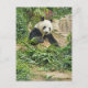 Ein schönes Foto eines niedlich panda fressenden Bambus, gedruckt auf einer Postkarte.