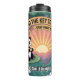 Diese sonderbare Grafik zeigt einen Panda, der eine Tasse Tee auf einer Klippe mit einem schönen Sonnenuntergang im Hintergrund genießt. Ein Banner mit dem witzigen Text 'I'VE FOUND THE KEY TO HAPPINESS - BLEIBE AWAY FROM IDIOTS,' schafft ein humorvolles und relatives Design.