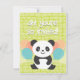 FRONT: Limoner und hellgrüner Musterhintergrund illustriert durch einen niedlichen gesessenen Panda mit vielen Party Ballons auf seiner Rückseite. Geschrieben "oh! Sie sind also eingeladen!" RÜCKSEITE: Das gleiche Muster wie der Hintergrund, einen Limonen grünen Kreis kennzeichnend, illustriert durch ein niedliches kawaii Pandagesicht, das einen Partyhut trägt. unter geschrieben "meinem Superpanda-Party". FERTIGEN Sie besonders an: Ändern Sie den vorhandenen vorbildlichen Text durch Ihre Partyinformationen. Für Schriftartgröße benutzen Farbe oder Art Änderungen die Orange besonders anfertigen sie Knopf.