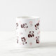 Tasse zeigt Muster von niedlichen Pandas und Herzen.