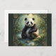 Ein kleiner Panda sitzt im Wald an einem Bach.