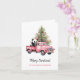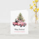 Panda in Retro Pink Truck Weihnachtsbaum Karte