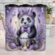 Diese bezaubernde Abbildung zeigt einen niedlichen Babypanda mit einer Krone aus violetten Blumen und einer Bogen-Krawatte. Der Panda hat einen glühenden Zauberstab und ist von Lavendel, Rose, Schmetterlingen und einer beleuchteten Kerze umgeben. Der zauberhafte, leuchtende Hintergrund schafft eine charmante und skurrile Märchenlandschaft.