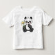 Ein Babypanda sitzt das Halten auf eine gelbe Blume.
