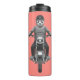 Dieses Ausrüstungsbeschreibungen ein Panda, der ein motorcyle reitet.
