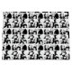 Panda-Muster Dieses Bild zeigt acht bezaubernde Pandas in verschiedenen Posen. Sie sind alle in Schwarz und Weiß gezeichnet, mit ihren charakteristischen schwarzen Flecken um ihre Augen und Ohren. Einige der Pandas sitzen, während andere liegen oder stehend sind. Sie alle haben spielerische Gesichtsausdrücke, die sie sehr niedlich aussehen lassen. Der Hintergrund ist transparent.