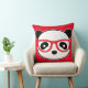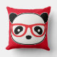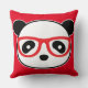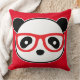 Niedliches Panda Kissenbären Gesicht mit roten Brillen. Fügen Sie Text, Farbe, Stil auf Ihrem Panda Bären Kissen.