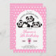Laden Sie alle Ihre Familie und Freunde zu der Baby Pandas Thema Geburtstag Party Ihres Kindes mit dieser polka dot Geburtstagseinladung. Personalisieren Sie es mit dem Hinzufügen von Alter, Name und Party Details zu dieser niedlichen Pandas-Einladung.