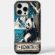 Ein Panda verwöhnt Sie mit einem Bambus an einem ruhigen, abgeschiedenen Ort. Der rustikale, verwitterte dunkle Holzboden schafft ein natürliches Ambiente. Ein schneebedeckter Berg bietet eine landschaftliche Kulisse, während der blaue Ozean eine Touch der Ruhe schafft. Personalisieren Sie die Szene mit einem individuelle Name.
