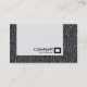 Eine Visitenkartenvorlage mit einem attraktiven, halbtransparenten Panel, das mit einem 3/8 Zoll links Hauptvorteil am links und am unteren Ende angeordnet ist, mit einem größeren 3/4 Zoll-Rand rechts. Der Hintergrund ist mit einer attraktiven abstrakten Textur, einem Foto oder einem Kunstwerk geschmückt, das nach Wunsch auch durch ein eigenes Bild ersetzt werden kann. Firmendetails auf der Vorderseite mit Namen und Kontaktdaten auf der Rückseite. Das Design kann auch weiter angepasst werden. Das quadratische Logo, das in diesem Design verwendet wird, stammt von einem von Zazzle's nützlichen Schriftart, es kann als dekorative Logo-Funktion beibehalten werden, ersetzt durch ein anderes Symbol oder Ihr eigenes Logo.