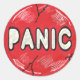 Das Panic Button Design zeigt einen großen roten Knopf mit dem Wort "Panik". Ist es Zeit, es noch zu drücken? Spaß Grafik für Zeiten, wenn man den Panik-Knopf drückt, ist die offensichtliche Antwort.