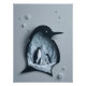 Eine auffallende minimalistische Grafik zeigt den Kopf eines Pinguins im Profil und belegt den größten Teil des Rahmens mit seiner kühnen Silhouette, die als Fenster dient, in einer detaillierten, geschichteten Papierhandszene. Durch einen doppelten Belichtungseffekt wird innerhalb der Silhouette eine zarte Pinguinfamilie - Eltern und Küken - aus gefaltetem und geschichtetem Papier, Set gegen stilisierte Schneeabdrifte und kristalline Eisformationen, die in coolen Blautönen, Grautönen und Weiß dargestellt werden, aufwändig hergestellt. Der Hintergrund außerhalb der Silhouette ist sauber, hellgrau, subtil strukturiert mit winzigen schneeflockenartigen Papierausschnitten, die eine ruhige antarktische Umgebung hervorrufen. Der Gesamtstil verbindet schlichte grafische Einfachheit mit taktiler, detaillierter Papierkunst und schafft eine harmonische Mischung aus kühner Silhouette und zarten, dimensionalen Szenen, die die knackige Gelassenheit der eisigen Wildnis wecken.
