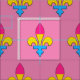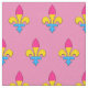 Stoffe mit einem nahtlosen Muster mit Fleur-de-lis in den Farben der Panikmache-Stolz-Fahne auf rosa Hintergrund; handgefertigte Waren aus Bi-Stolz