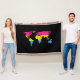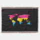 Design mit Weltkarte in den Farben der Panikstolperflagge mit Regenbogenstreifen in Blau, Rosa und Blau; Pan-Stolz-Design auf schwarzem Hintergrund durch Pinkbrickroad