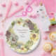 Vintage Abbildung blaue, lila und gelbe Stiefmütterchen in einem Personalisierten Ring für Ihre Dusche oder Ihr Party