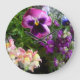 Hübscher lila Pansy umgeben durch lila Veilchen auf lagerund Lachsrosa und Gelb snapdragons