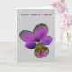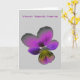 Diese Grußkarte enthält ein Foto einer wilden Pansy Blume. Das Foto ist künstlich gefärbt und bietet eine Pansiepalette mit lila und dunklen Farbtönen sowie einen gelben und schwarzen Mittelpunkt. Der Hintergrund ist blassgrau. Auf der Vorderseite der Karte befindet sich ein individuell anpassbarer lila Text über der Pansie, sodass diese Karte für jede Gelegenheit geeignet ist.