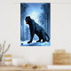 Abends Panther im verschneiten Wald. Das ist eine künstlerische KI.