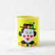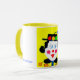 Illustration eines Pantomimecharakters: ein fröhlicher bunter Charakter, der extravagantes Kleid und übertriebenes Make-up trägt.