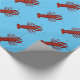 Panzerkrebs-Packpapier entwarf helle rote Panzerkrebse auf einem blauen Hintergrund.
