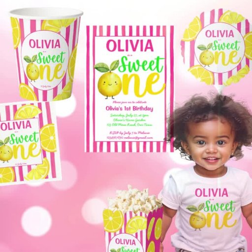 Sweet One Pink Lemonade First Birthday PartyDesignt von Ieva Jenciute
