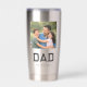 Vater Etablierte Moderne Foto- und Text-Einfache Edelstahl-Tumbler-Geschenke - Feiern Sie Väter, neue Väter und werdende Väter am Vatertag mit diesem modernen Tumbler-Design, das ein Lieblingsfoto von Papa mit dem Wort „DAD“ in moderner schwarzer College-Typografie darunter zeigt, plus Platz, um es mit einem „Est.“-Jahr oder Jahren darunter zu personalisieren, für den Zeitpunkt, an dem er Vater wurde. Sie können auch "Dad" in Daddy, Dada, Papa, Pop oder einen anderen kurzen Namen ändern, den Sie bevorzugen. Alle Details wiederholen sich auf beiden Seiten.