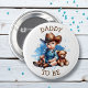 Vater zum Baby-Duschknopf. Niedlicher kleiner Cowboy Baby Boy und Teddy Bear Blue und Brown ai Aquarellbild.