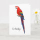 Dieses Design zeichnet sich durch einen glänzenden, leuchtend roten Ara Papagei im Cartoon-Stil aus.