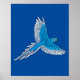 Papagei im Flug, Kobalt Blau und Weiß Poster