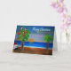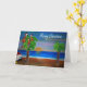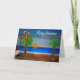 Papageienkarten aus meiner Kunst: Tropischer Weihnachtsfeiertag im Sonnenuntergang mit Weihnachtspalmen im Ozean. Originelle Kunstdesigns aus meinen Bildern.