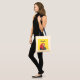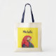 Tropischer Vogelbeutel mit personalisiertem Totenbeutel, mit einem roten und grünen Ara-Bild auf gelbem Hintergrund. Mit blauen Schriftzeichen können Sie mit Ihrem eigenen Namen personalisieren. Ideal, um Ihren Wünschen oder Urlaubsaktivitäten eine tropische Touch hinzuzufügen.