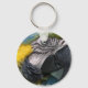 Papagei steht nahen und persönlichen Schlüsselanhänger gegenüber.