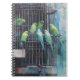 Dieses Notebook-Cover verfügt über ein lebendiges und strukturiertes Kunstwerk aus farbenfrohen grünen und blauen Papageien, die in einem rustikalen Metallkäfig aufgestellt sind. Der malerische Stil und die verwitterten Töne erinnern an Schönheit und Kontemplation, indem sie Themen wie Freiheit, Freundschaft und Stille einfangen. Ideal für Journalismus, Skizzen oder tägliche Reflexionen.