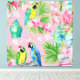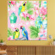 Papageien und Chinoiserie-Gläser auf weichem Rosa Leinwanddruck