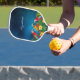Papageienvögel Rot-Gelb-Muster-Namensskript Pickleball Schläger