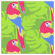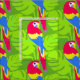Verzierte grüne tropische Palmen Blätter und Papageien Vogelgrafik gemusterte Stoff. Original grafische Kunst und Design von Sarah Trett.