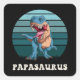Papasaurus Funny Dinosaur auf grünem Retro-Sonnenu Quadratischer Aufkleber