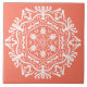 Dieses weiße Mandala liegt auf einem papaya-Orangen- oder Lachshintergrund. Die Farben sind hell und warm. Teil der Erghenn Mandala Kollektion.