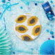 Handgemalte Aquarellfarbe und Farbmuster mit Papaya-Scheiben