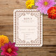 Diese Einladung Antwort Karte wird von den traditionellen mexikanischen Hochzeitsbannern, genannt papel picado, inspiriert. Sie sind perfekt für ein Latinx-Fest oder eine Mexiko-Hochzeit in Urlaubsort. Siehe die koordinierende Hochzeitskollektion oben..
