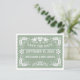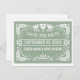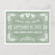 Sage green Papel picado Liebhaber Vögel Hochzeit Save the Date Postcard zeigt zwei weiße Liebesvögel und eine Liebe Herz mit dem Wort "Liebe" sowie Blume, Blätter und kleine Punkte auf Salbei grünen Hintergrund.