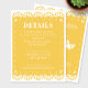 Nutzen Sie diese schöne Pappkarte mit Details zum Pikado Stil, um zusätzliche Informationen zu Ihren Hochzeitseinladungen hinzuzufügen. Die Rückseite ist mit einem Blumenmuster gestaltet. Ideal für eine traditionelle oder moderne mexikanische Hochzeit.