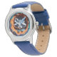 Kinderuhr aus Edelstahl mit blauem Lederarmband