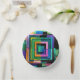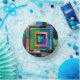 An abstract design composed of colorful squares covers this paper bowl.