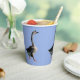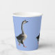 Kanadische Gänse wandern um die Tasse herum. Hintergrund ist mittlerer Himmel blau.