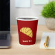 Croissant Ikone. Benutzerdefinierte Hintergrundfarbe. Benutzerdefinierter Text auf beiden Seiten.